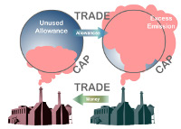Cap and Trade: Issue "carbon credits" to factories, or to countries, or auction them off to the highest bidder, where a carbon credit is permission to emit a certain amount of greenhouse gases. This has been tried many times with varying success. Over time, the total amount of credits is reduced as emitters clean up their act. Sometimes the carbon credits are issued to polluters (be they factories, or countries) according to how much they were emitting before the scheme began. If an emitter is able to reduce emissions, they may have a surplus of carbon credits that they can sell to make money. If an emitter increases emissions, they need to find someone that they can buy credits from. So everyone has an incentive to reduce emissions. There have been cases where companies go bankrupt and shut their doors, but keep alive a shell company to receive their carbon credits, which they then sell. John McCain had cap and trade as part of his campaign platform when he ran for president in 2008. If the carbon credits are just arbitrarily given to companies, they become an arbitrary windfall and reward for past bad behavior. If they are auctioned off by the government, that can just amount to an awkward carbon tax funding the growth of the public sector. Most observers today agree that a carbon fee or tax is a better approach than cap and trade. Drawbacks: